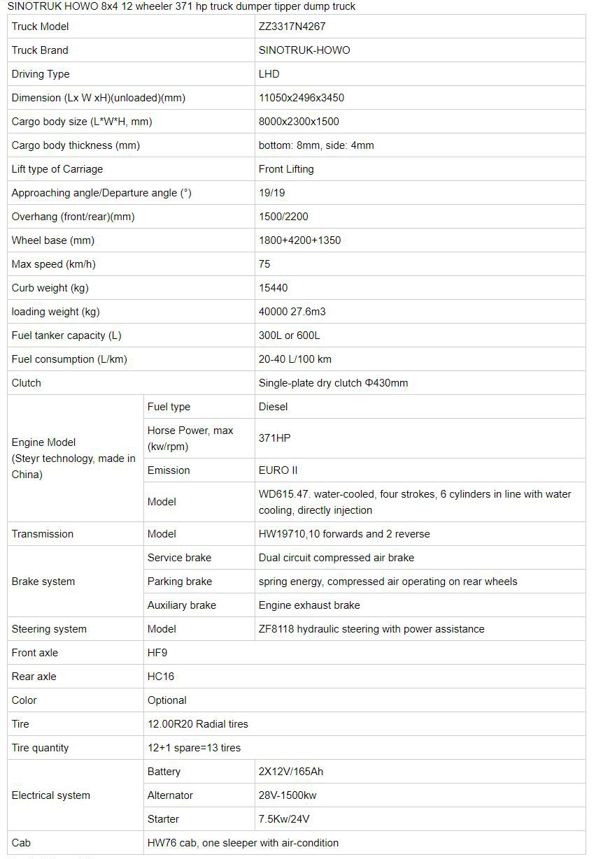 China SINOTRUK HOWO 24M3 8X4 Cheap 371HP 12 Wheeler Dump Tip