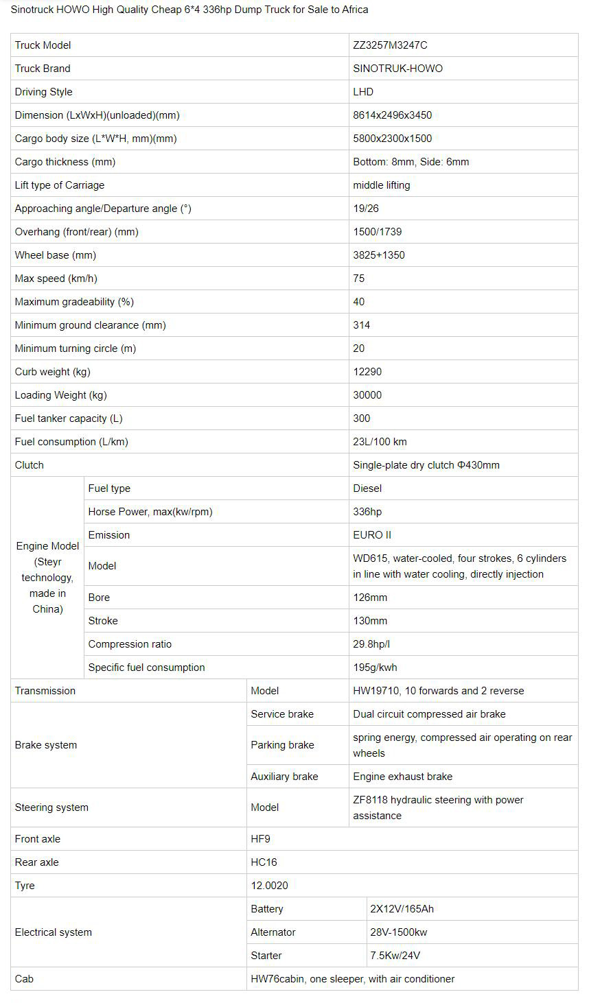Sinotruck HOWO High Quality Cheap 6*4 336hp Dump Truck For S