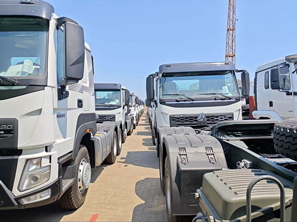 The HOWO V7 tractor has 400 horsepower. China National Heavy Duty Truck HOWO-V7 6X4 tractor (left side)