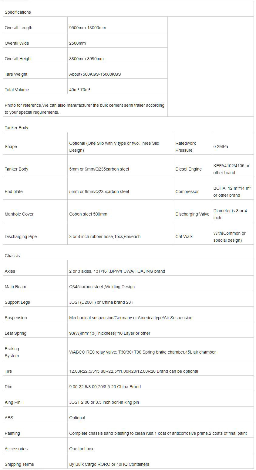 Shandong Chengda Bulk Cement Tank Trailer
