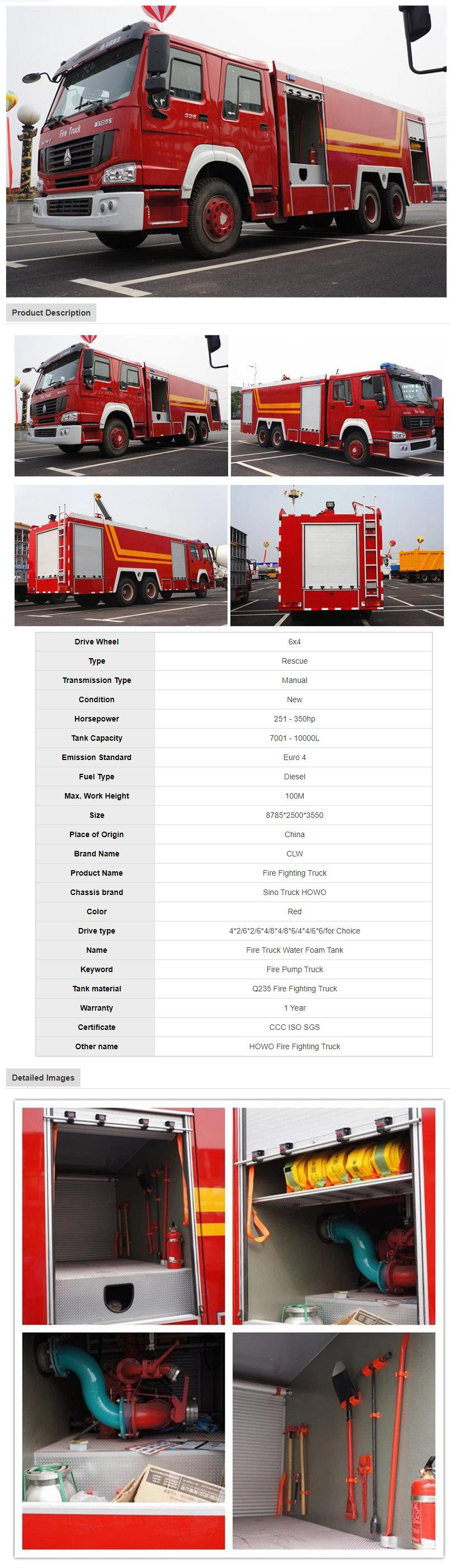 Sinotruk Howo 6*4 336hp 371hp Water Tanker Fire Fighting Tru