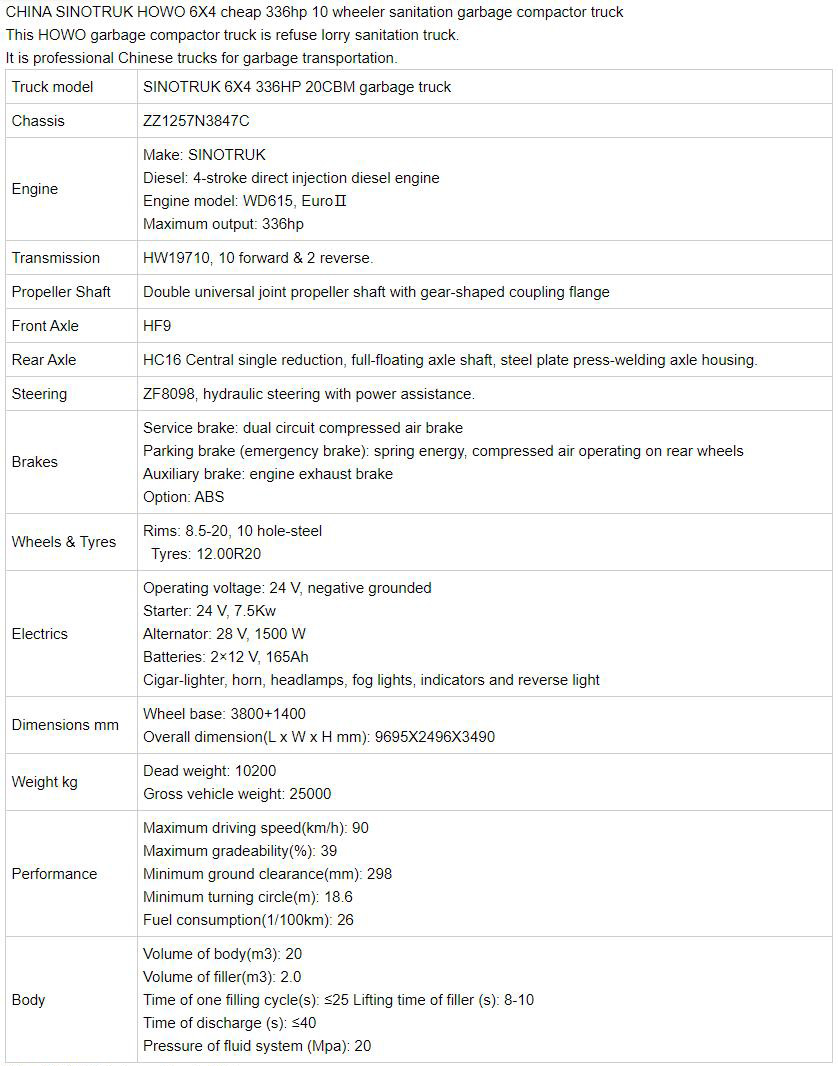 China SINOTRUK HOWO 6X4 Cheap 336HP 10 Wheeler Sanitation Ga
