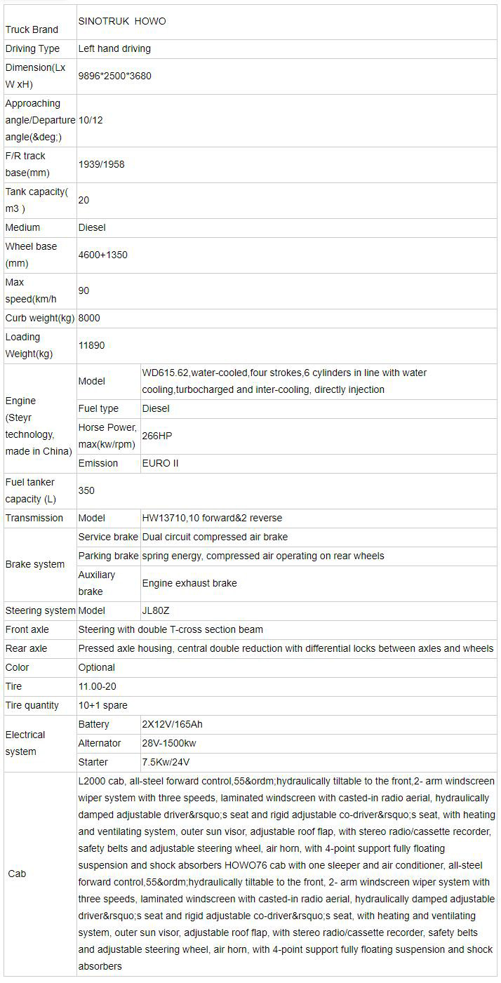 Sinotruk Howo 6x4 371HP 20m3 Water Tank Truck