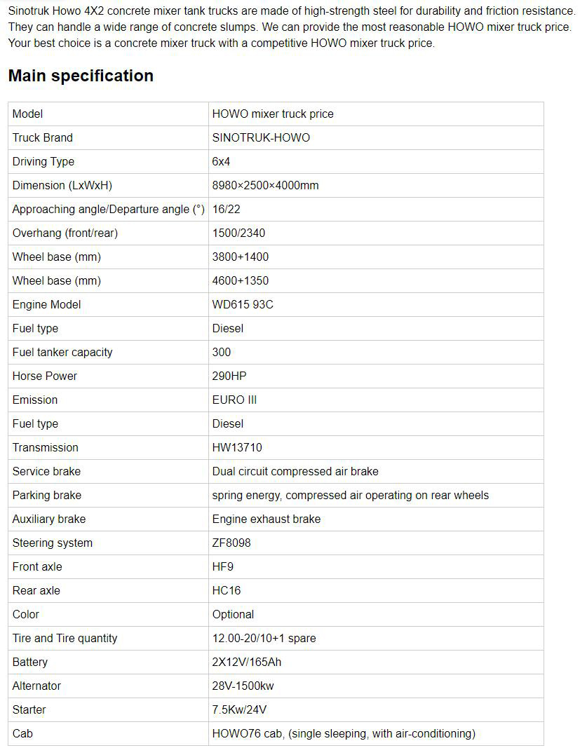 Sinotruk Howo 4X2 Concrete Mixer Tank Truck