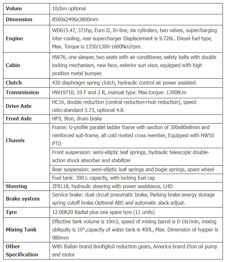 HOWO Self Loading 8 Cubic Meters Concrete Mixer Truck