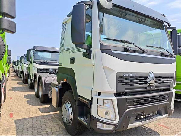The HOWO V7 tractor has 400 horsepower. China National Heavy Duty Truck HOWO-V7 6X4 tractor (left side)
