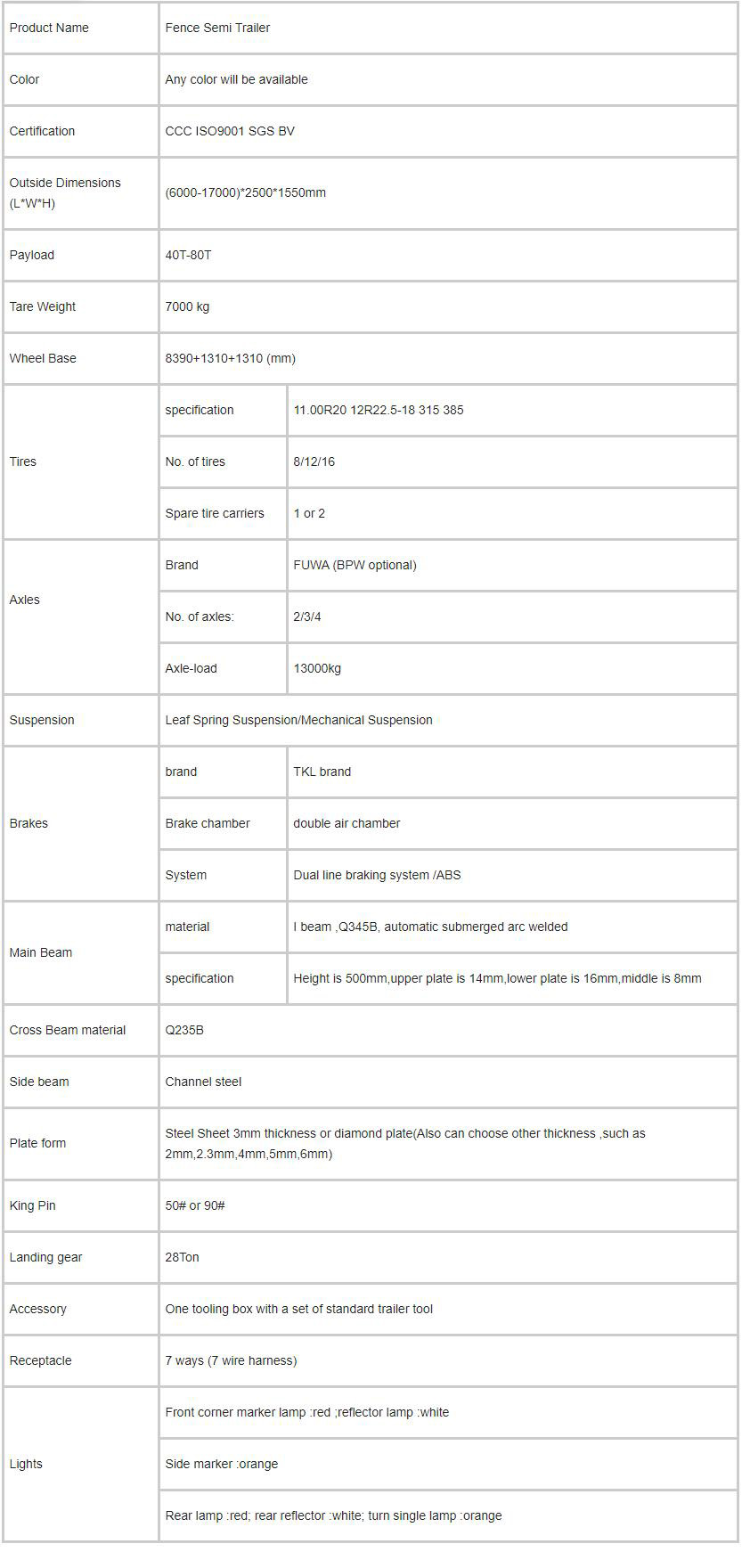 50Tons Tri-Axle Stake Dropside Bulk Cargo Aluminum Semi Trai