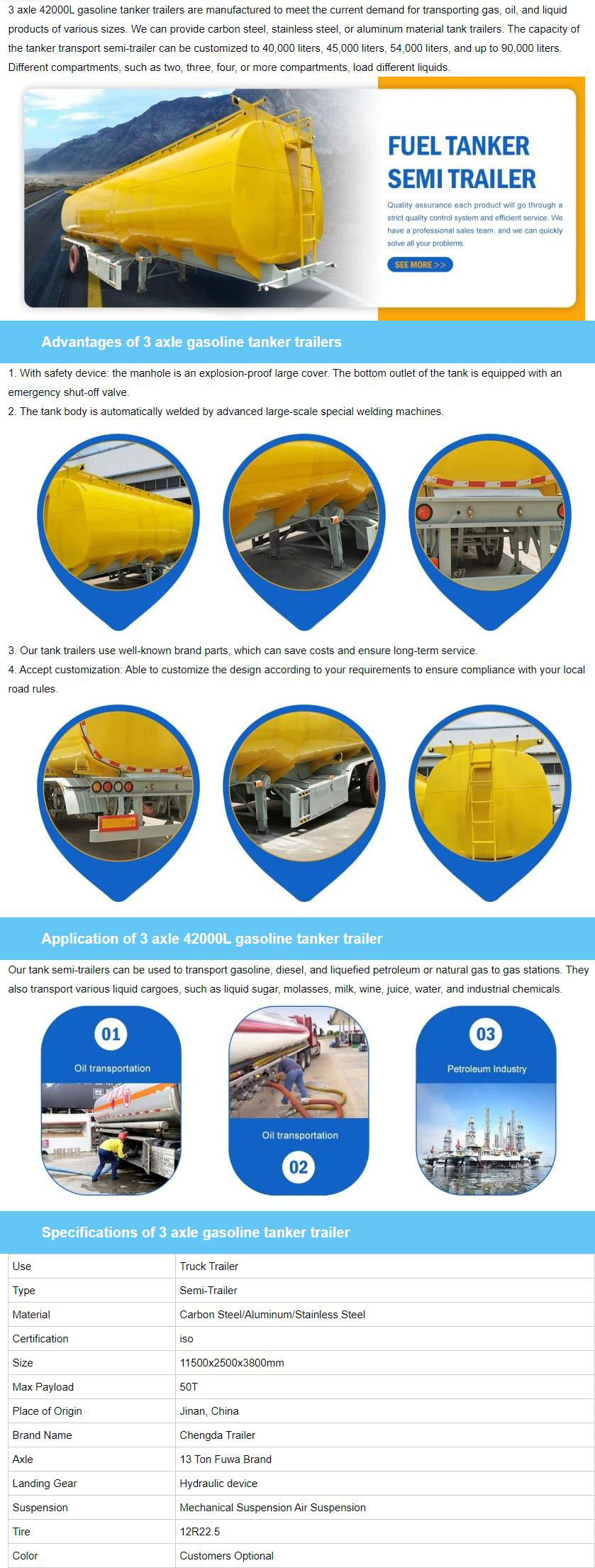 3 Axle 42000L Gasoline Tanker Trailer