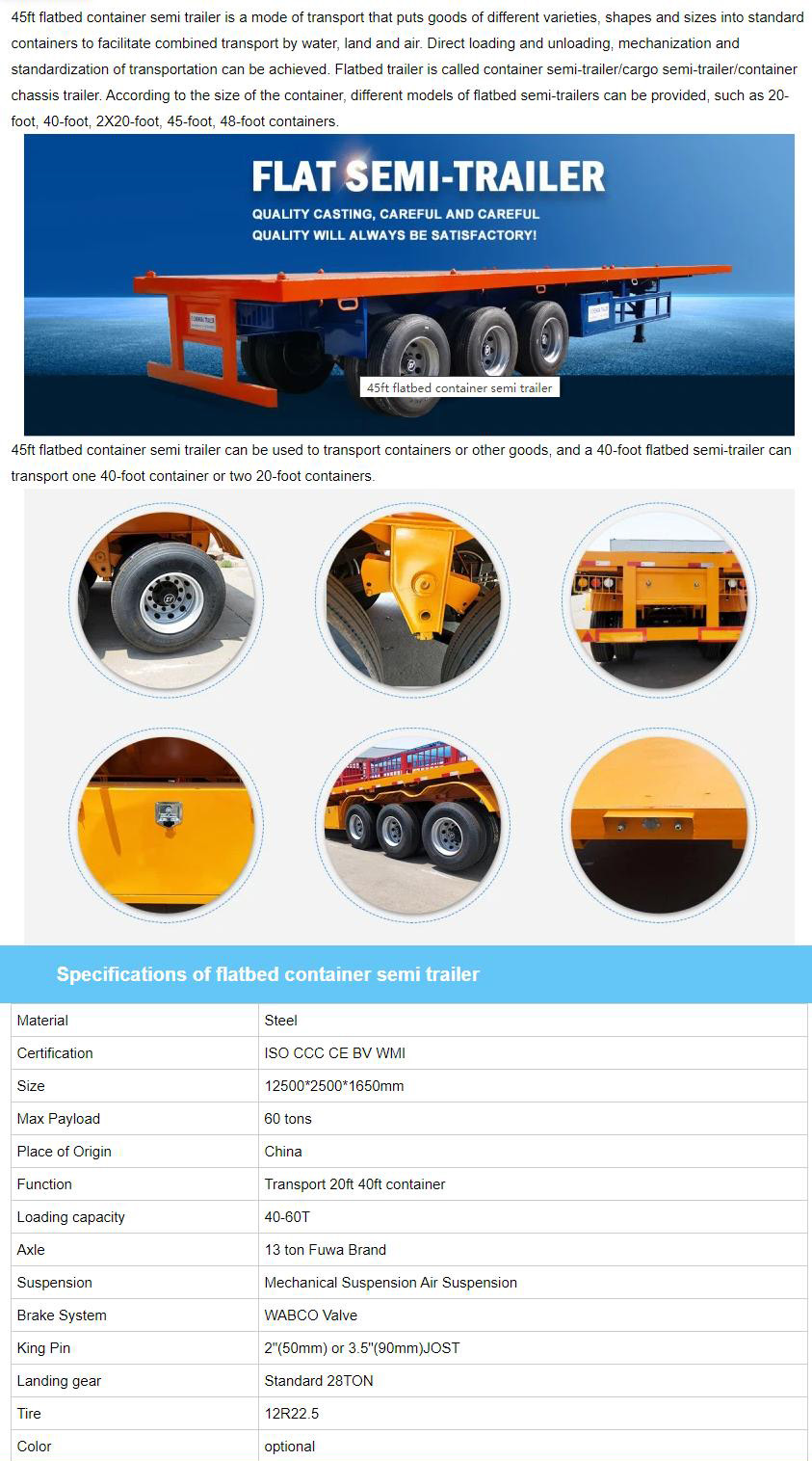 45ft Flatbed Container Semi Trailer