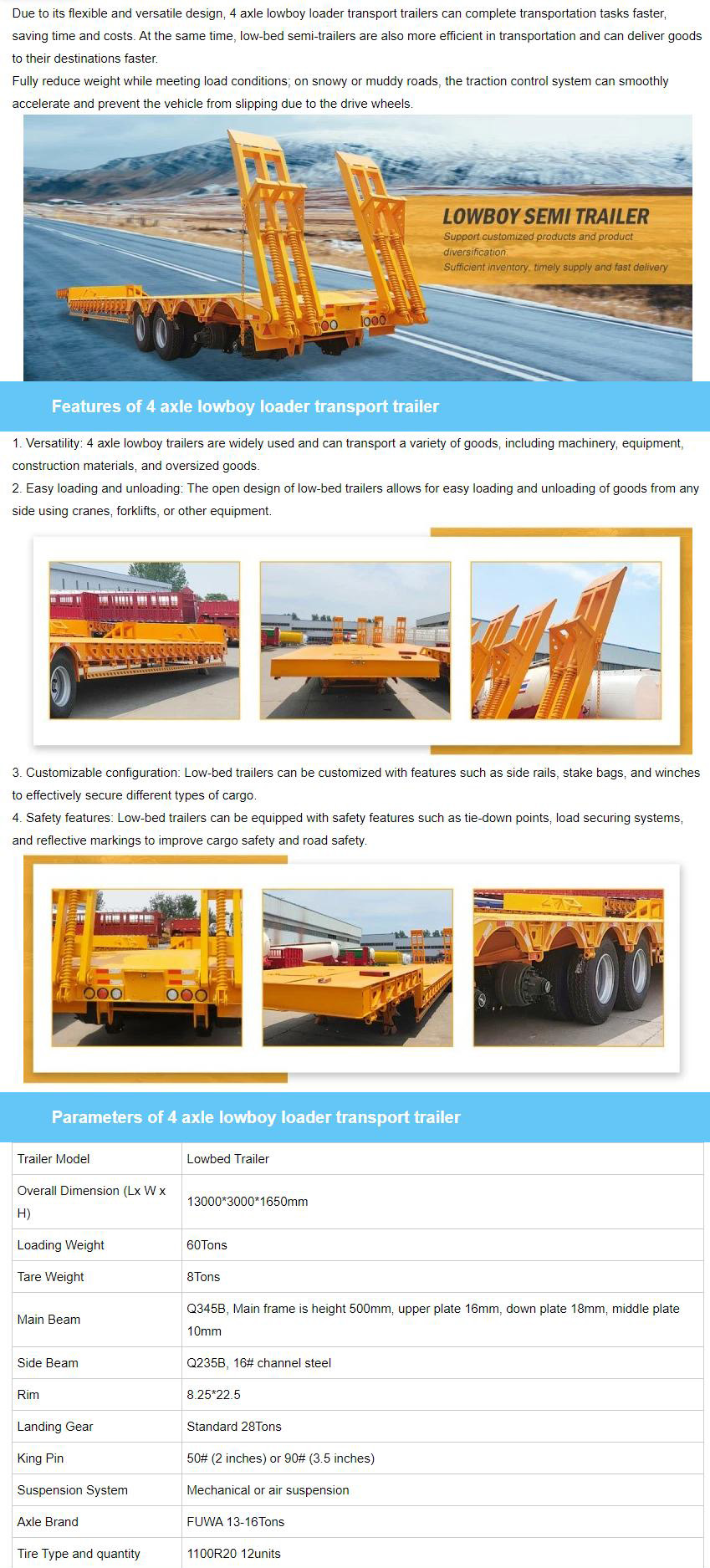 4 Axle Lowboy Loader Transport Trailer