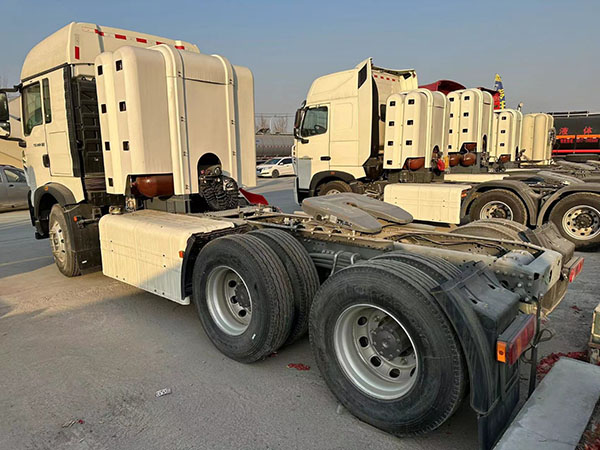 Haowo TX7; tractor; TX-V Cabin Classic Edition; MAN engine; HW19712CL gearbox; H653 self-adjusting arm front axle (drum); MCJ12BG self-adjusting arm double rear axle (drum); Speed ratio 4.11; TGA technology frame-B version; Front and rear few leaf springs (2/3); Domestic steering gear; The speed limit is 89km/h; Standard version exhaust system; ABS(4S/4M); Low bumper (non-metallic); Lightweight wheels; 12R22.5 (low rolling resistance); 50 # JOST saddle; Integrated mudguard; 120 * 8+80 * 4 gas cylinders; LDWS+FCWS (with radar); China National Heavy Duty Truck Group Intelligent Communication D Edition;
