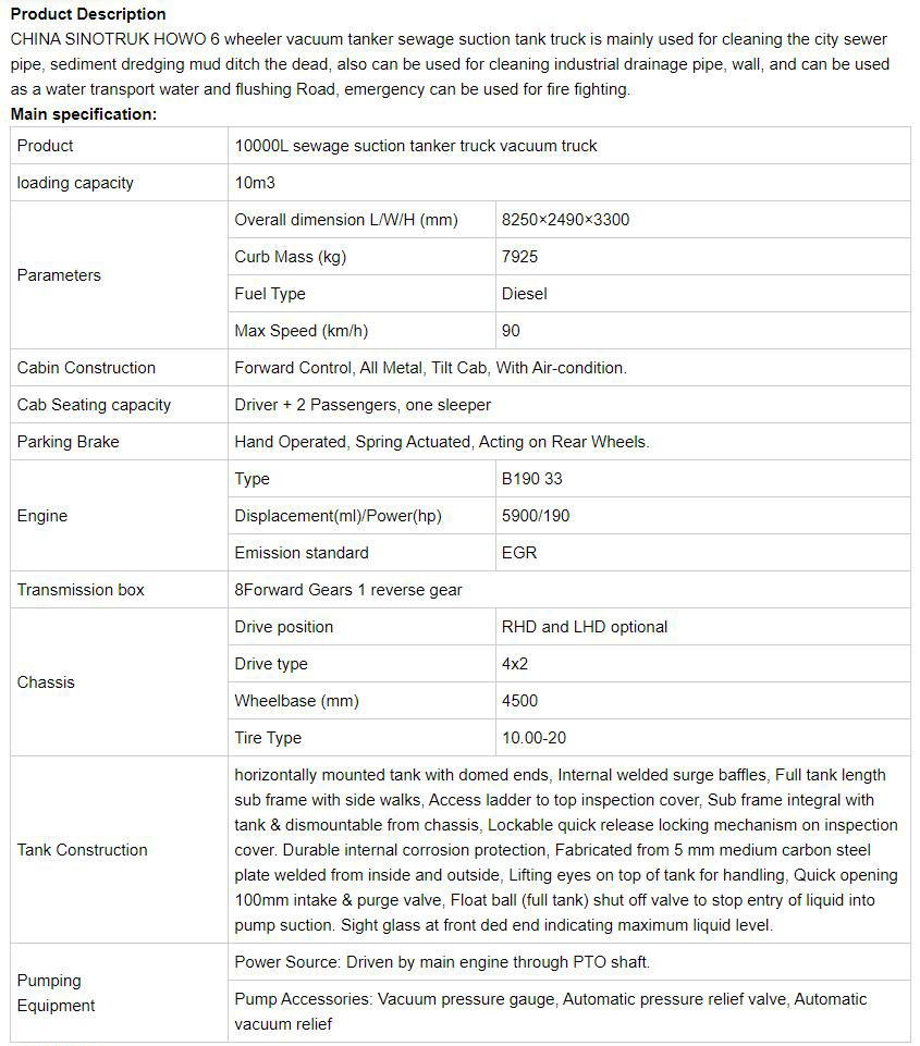 China SINOTRUK HOWO 6 Wheeler Vacuum Suction Sewage Tank Tru
